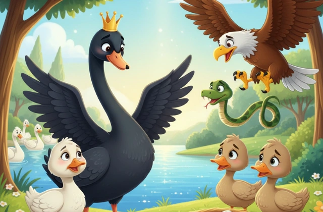 ఒక దట్టమైన అడవిలో నివసించే హంసల కుటుంబంలో ఒక నల్ల హంస జన్మించింది. అది నల్లగా పుట్టడం వల్ల దాని తల్లిదండ్రులు దానిని ఎప్పుడూ తిడుతూ, అవమానిస్తూ ఉండేవారు. ఆ తర్వాత వారికి ఒక తెల్లటి అందమైన బిడ్డ పుట్టడంతో, నల్ల హంసను మరింత నిర్లక్ష్యం చేయడం ప్రారంభించారు. అడవిలో చిలుక రాజు ఏర్పాటు చేసిన విందులో కూడా అందరూ ఆ నల్ల హంసను చూసి ఎగతాళి చేయడంతో, అది భరించలేక తన కుటుంబాన్ని వదిలి వేరే అడవికి వెళ్ళిపోయింది.