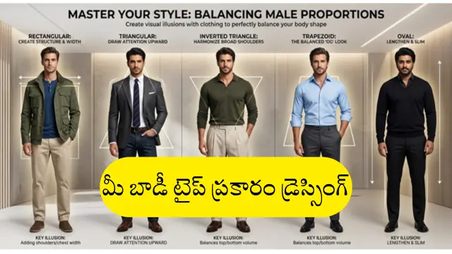 చాలామంది ఆన్లైన్ సైట్లలో ఏదైనా అవుట్ఫిట్ చూసి, అది మోడల్కు బాగుందని కొనేస్తుంటారు. కానీ అది మనం వేసుకునేసరికి సరిగ్గా సెట్ అవ్వదు. దీనికి ప్రధాన కారణం బాడీ టైప్ (Body Type). ప్రతి ఒక్కరి శరీరాకృతి వేరుగా ఉంటుంది, కాబట్టి అందరికీ అన్ని రకాల దుస్తులు నప్పవు. ఈ ఆర్టికల్ లో, బాడీ టైప్ను ఎలా గుర్తించాలి మరియు రెక్టాంగులర్ బాడీ టైప్, ట్రయాంగులర్ బాడీ టైప్, ఇన్వర్టెడ్ ట్రయాంగిల్ బాడీ టైప్, ట్రెపిజాయిడ్ బాడీ టైప్, మరియు ఓవల్ బాడీ టైప్ ఉన్నవారు ఎలాంటి జాగ్రత్తలు తీసుకోవాలో తెలుసుకుందాం.