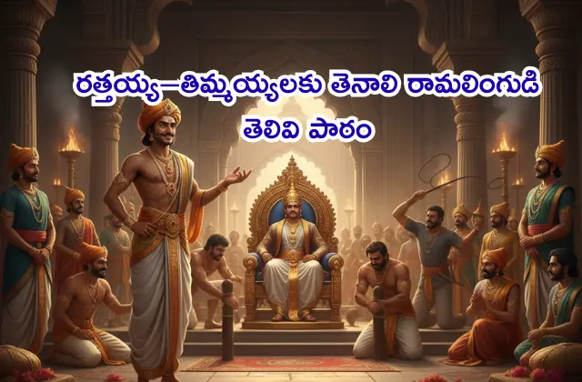 దాంతో మహారాజుకి అసలు కథ అర్థమయ్యింది. ఆ తరువాత రత్తయ్యకి, తిమ్మయ్యకి కొరడా దెబ్బలు తప్పలేదు. రామలింగడికి మాత్రం మంచి కానుకలు, రాజుగారి కొలువులో చోటు దొరికింది. చూశారా పిల్లలూ…! ఆ కాలంలోనే లంచాలకు ఆశపడినవారికి మన రామలింగకవి తెలివిగా ఎలా బుద్ధిచెప్పారో…!!