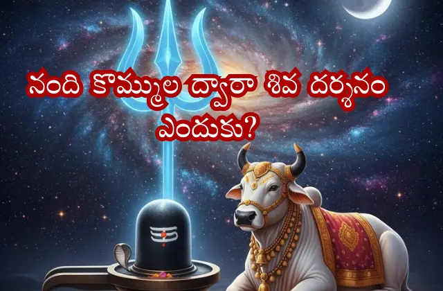 శివాలయంలో నంది విగ్రహం ముందు నిలబడి, దాని కొమ్ముల మధ్య నుంచి శివలింగాన్ని దర్శించుకోవడం ఒక ఆచారం. దీనికి ఆధ్యాత్మిక, సాంప్రదాయపరమైన కారణాలు ఉన్నాయి. నంది, శివుడికి ఎంతో ఇష్టుడైన భక్తుడు, శివలింగాన్ని దర్శించే ముందు నందిని పూజించడం, అతని అనుమతి తీసుకోవడం ముఖ్యమని భావిస్తారు. అలాగే, నంది కొమ్ముల మధ్య నుంచి శివలింగాన్ని దర్శించడం ద్వారా గురువు-శిష్యుల సంబంధాన్ని గౌరవించినట్లు అవుతుంది, ఎందుకంటే నంది శివుడికి గురువు లాంటివాడు.